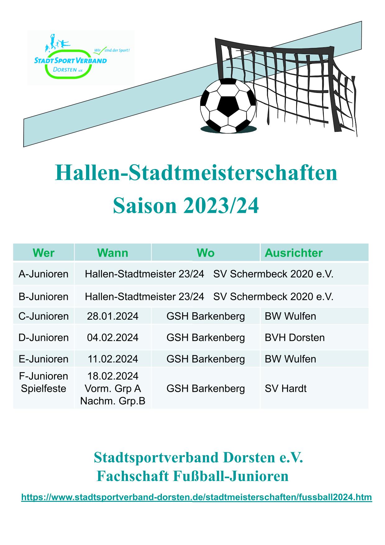 Ergebnis der Hallenstadtmeisterschaft Fußball-Jugend (PDF) und Auslosung