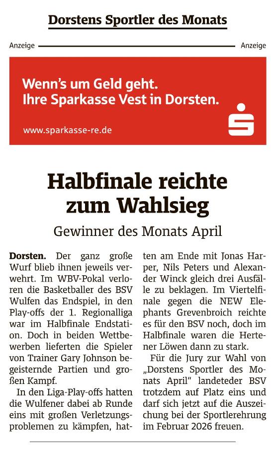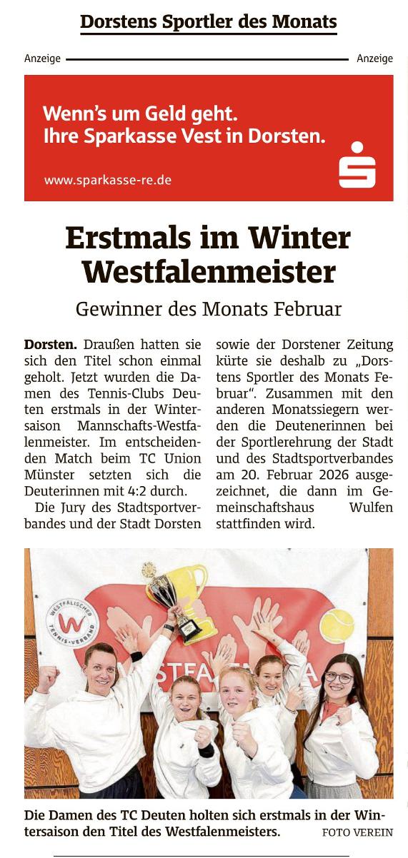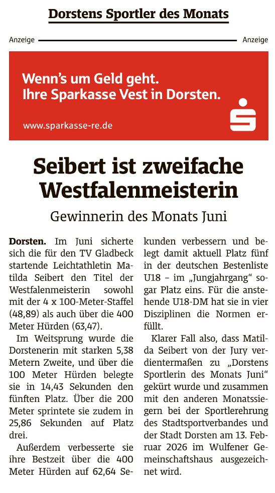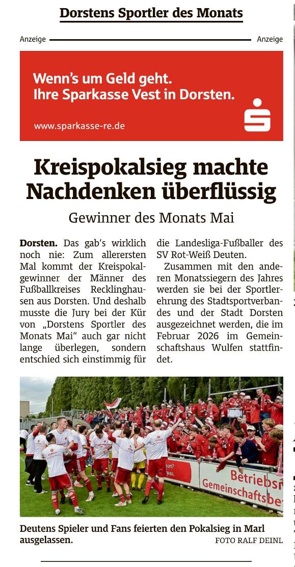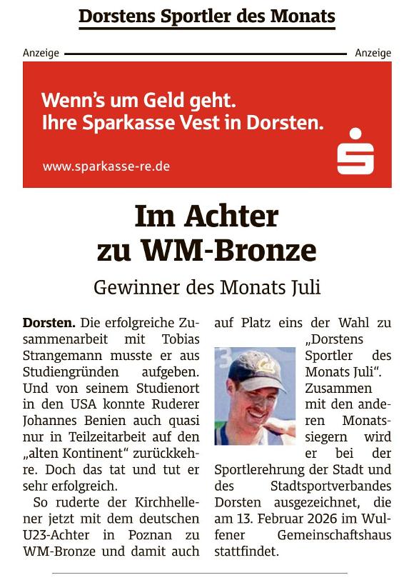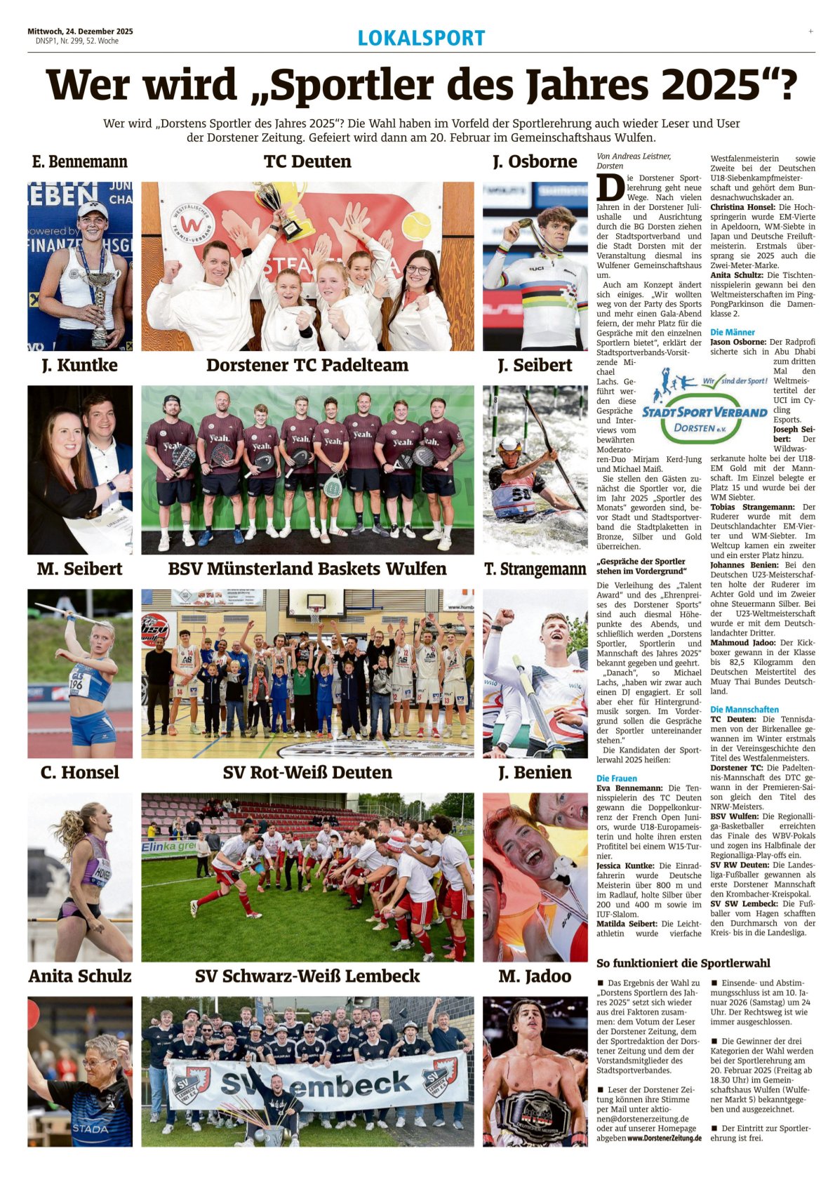 08.01.2026 DIE WAHL ZU DORSTENS SPORTLERN DES JAHRES 2025 IST ERÖFFNET!