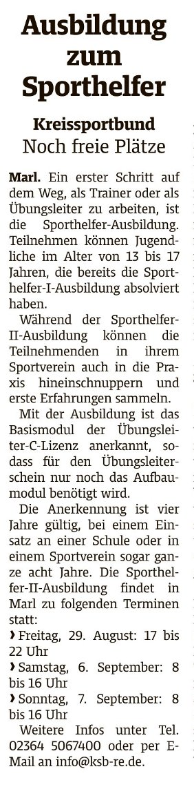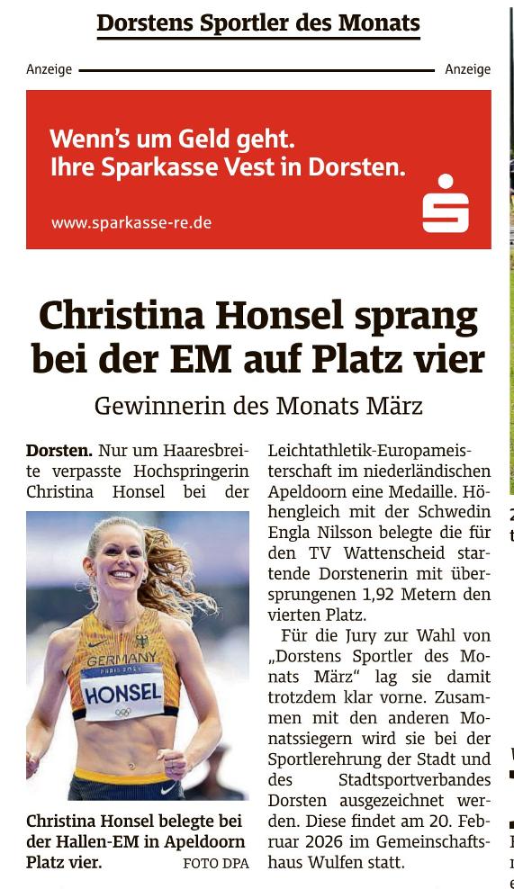 werden der Stadtsportverband und die Stadt Dorsten wieder in Kooperation mit der Dorstener Zeitung