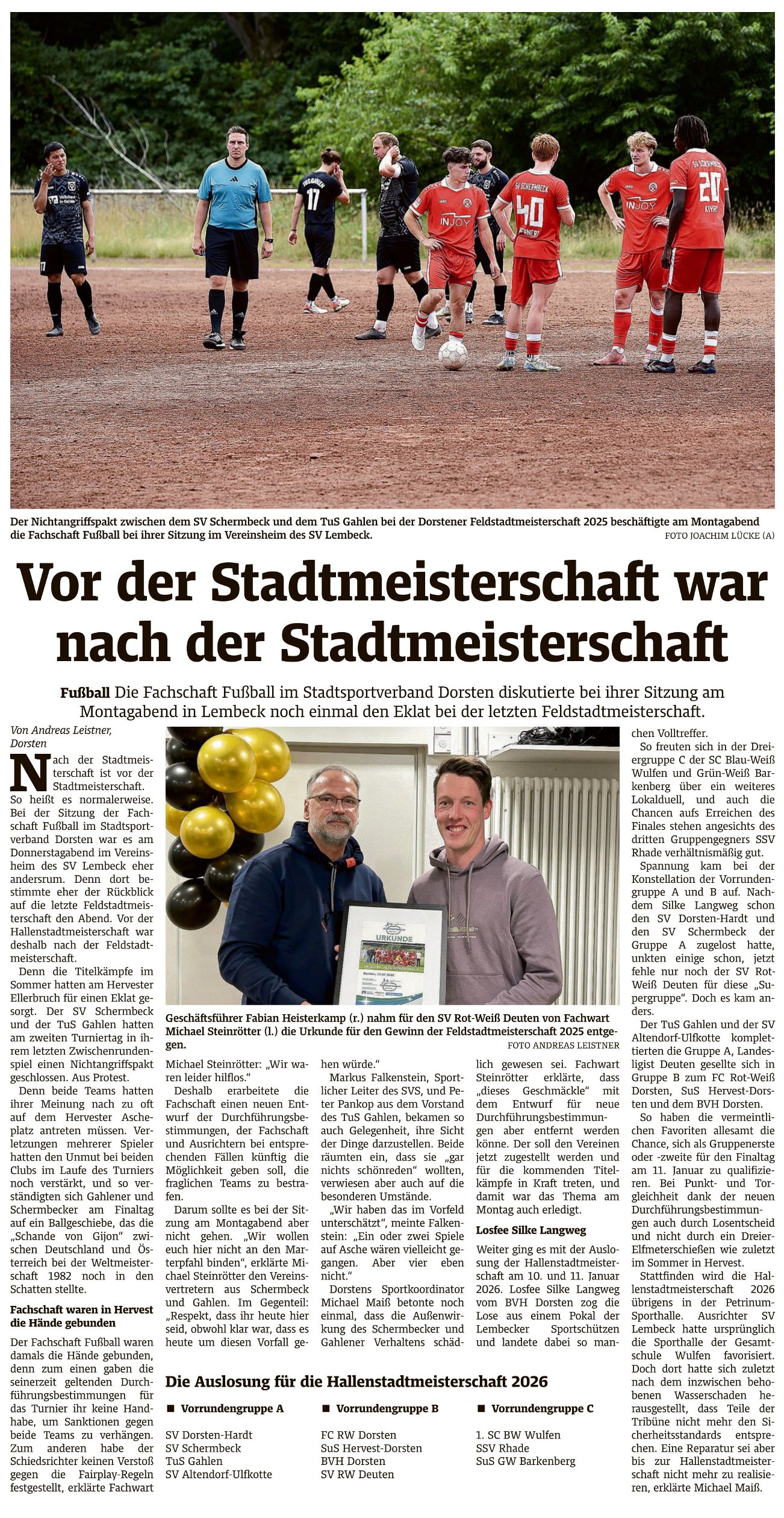 Nachbericht über die HSM der Fußball-Senioren aus der DZ vom 13.01.2026