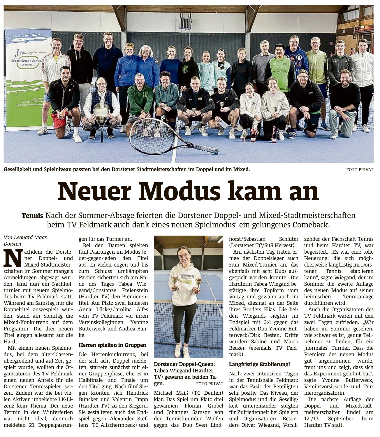 07.01.2026 Tennis Stadtmeisterschaft Doppel und Mixed