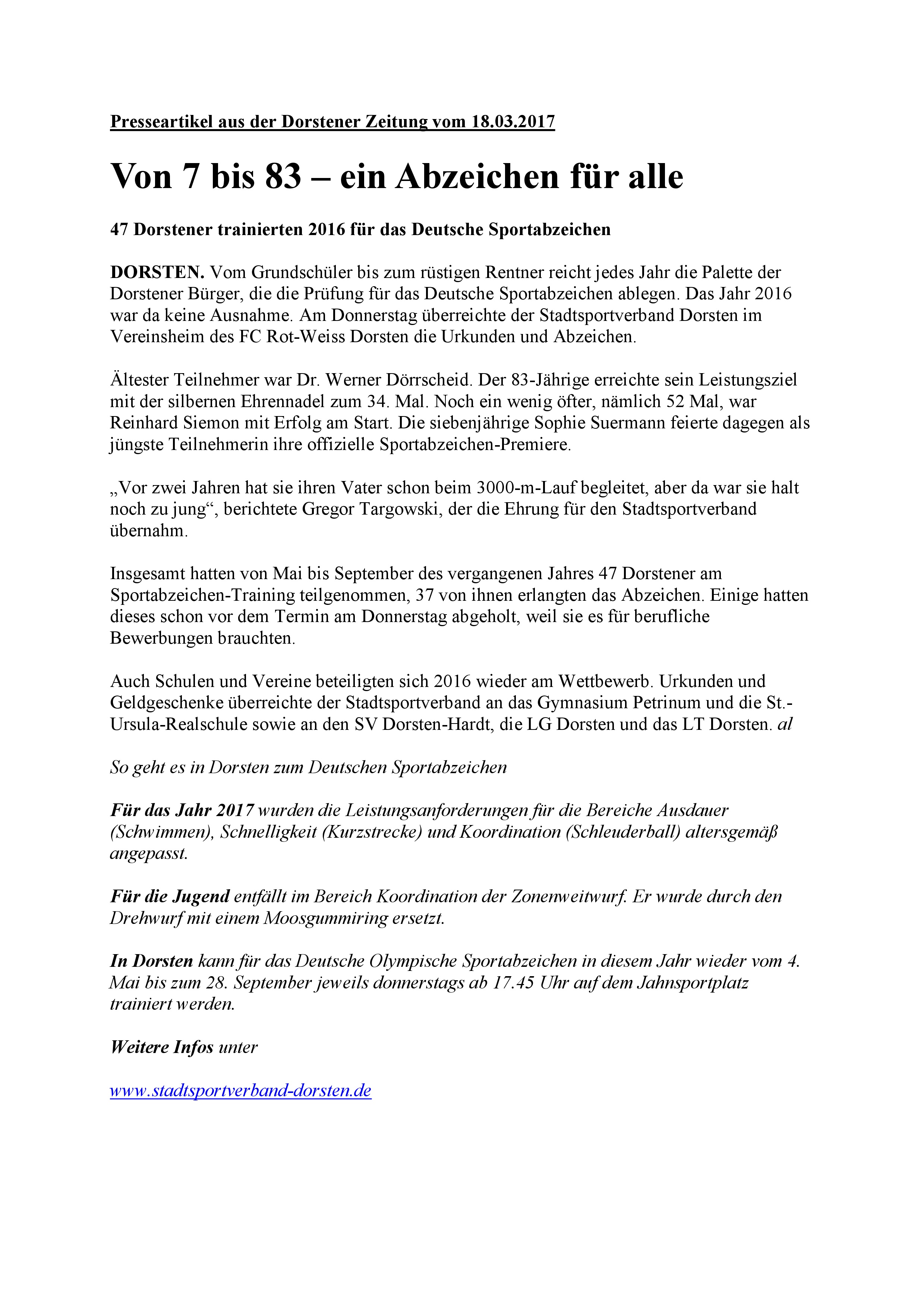 werden der Stadtsportverband und die Stadt Dorsten wieder in Kooperation mit der Dorstener Zeitung