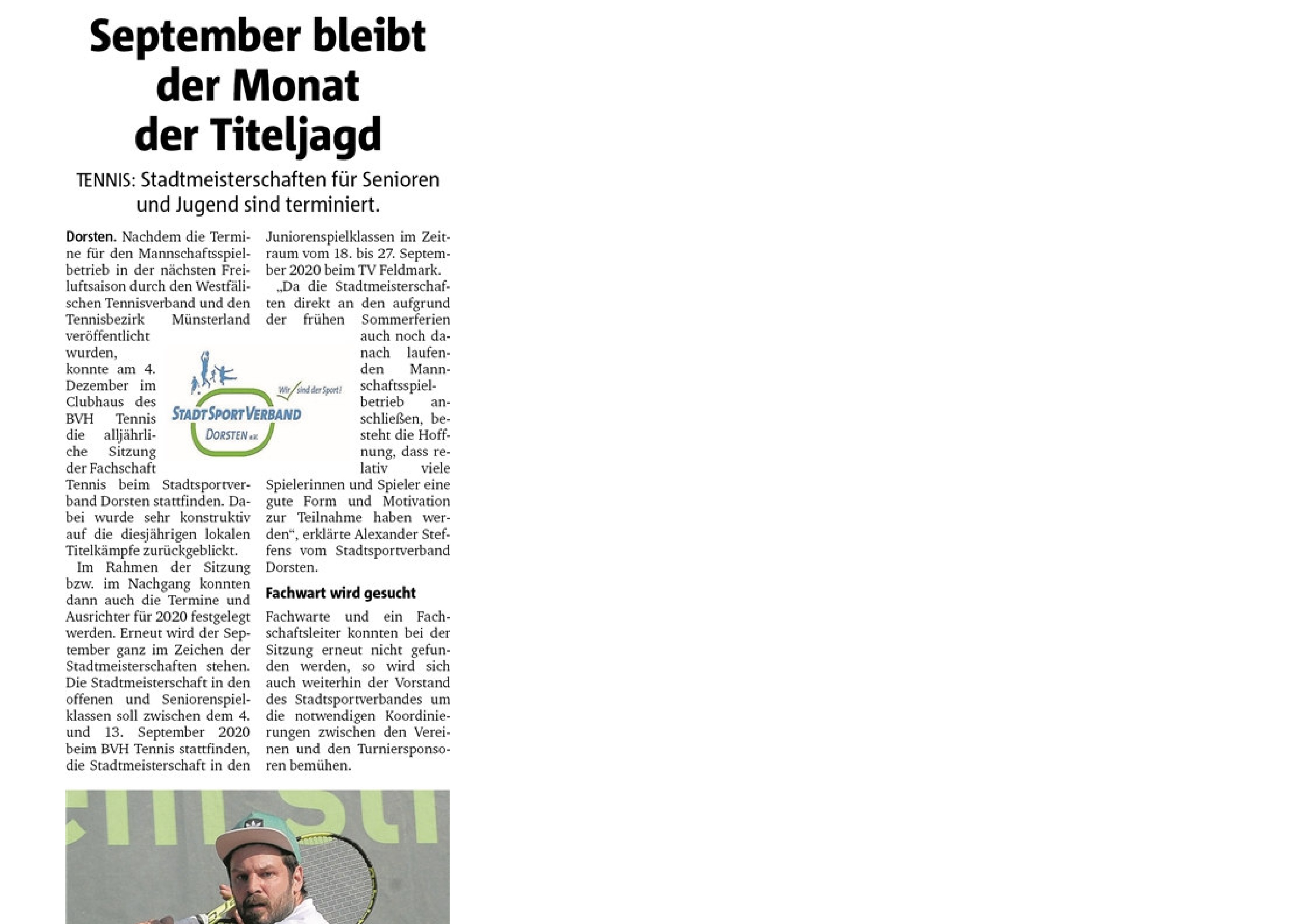 – Rubriken Stadtmeisterschaften --> Tischtennis und Stadtmeisterschaften -->   Tennis/SeniorInnen erweitert.